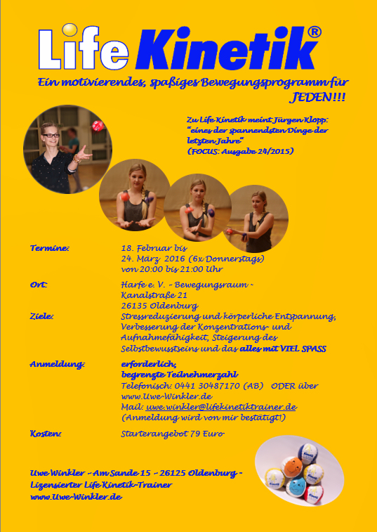 Telefonisch: 0441 30487170 (AB) oder uwe.winkler@lifekinetiktrainer.de (Anmeldung wird von mir bestätigt!)